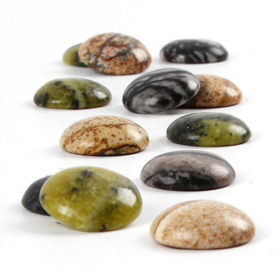 Cabochons, diam. 14 mm, ass. farver i ægte sten, 12ass
