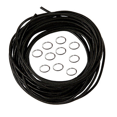 Sort lædersnøre 2 mm, 4 m samt 10 o-ringe 8 mm