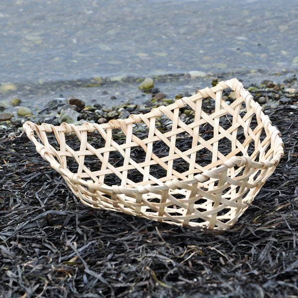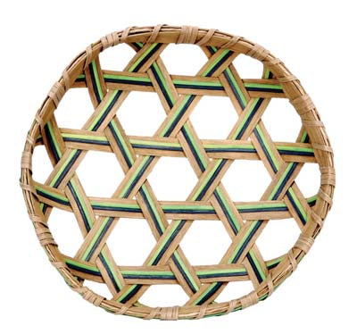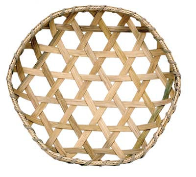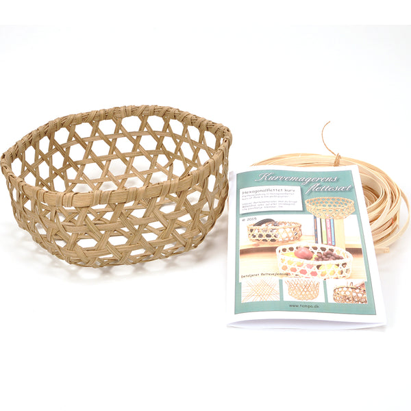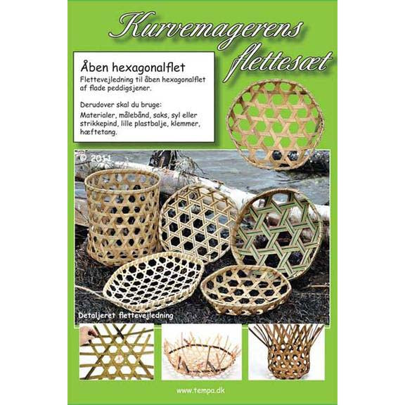 En hexagon er en sekskant med lige lange sider og vinkler på 120 grader i hjørnerne. I denne åbne hexagonal flet opstår en sekskantet stjerne omkring alle sekskanterne Det åbne flettede net kan fremstilles i alle flade materialer og bliver utrolig smukt flettet af flade sjener. Effekter på fadene laves nemt med smallere sjener i flotte farver. Fade og kurve i åben hexagonal flet afsluttes med en snøret kurvekant.