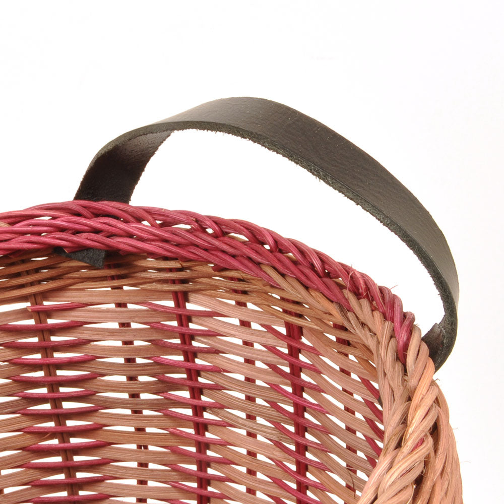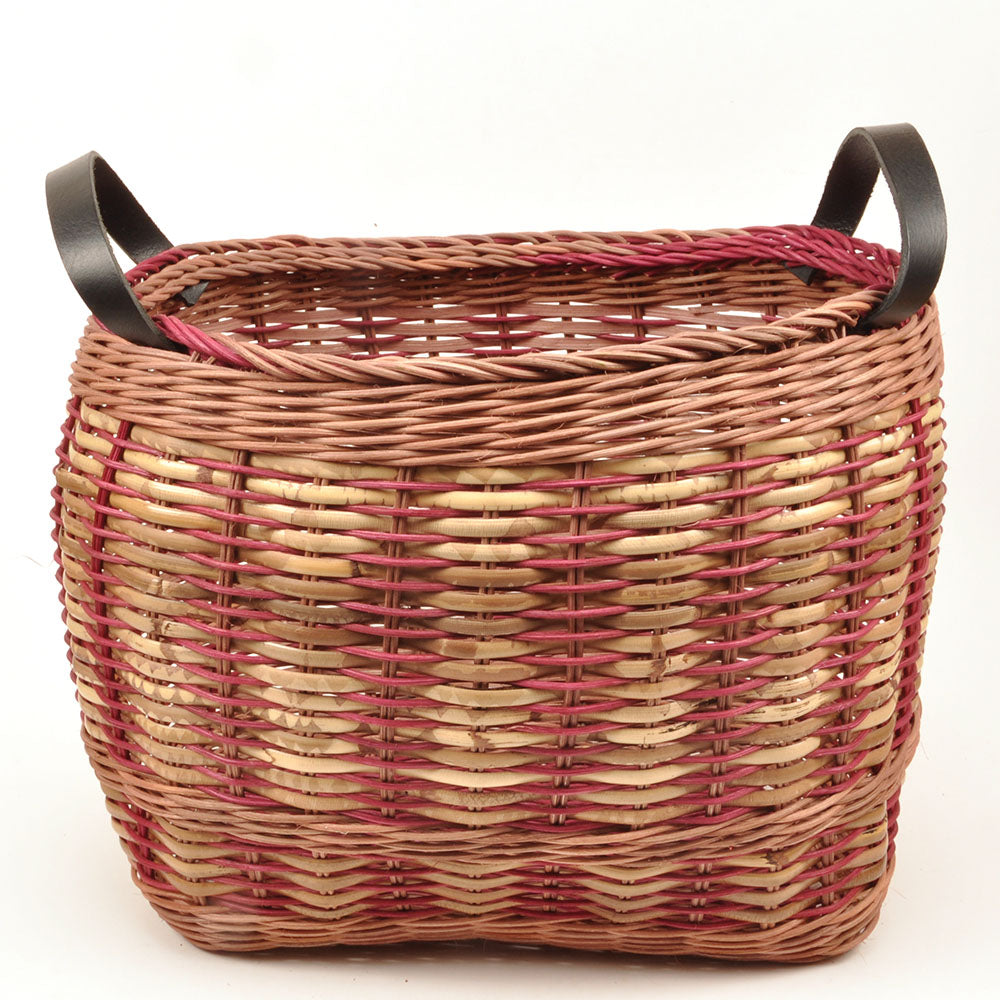 Aflang opbevaringskurv af rattan/peddigrør med læderhåndtag