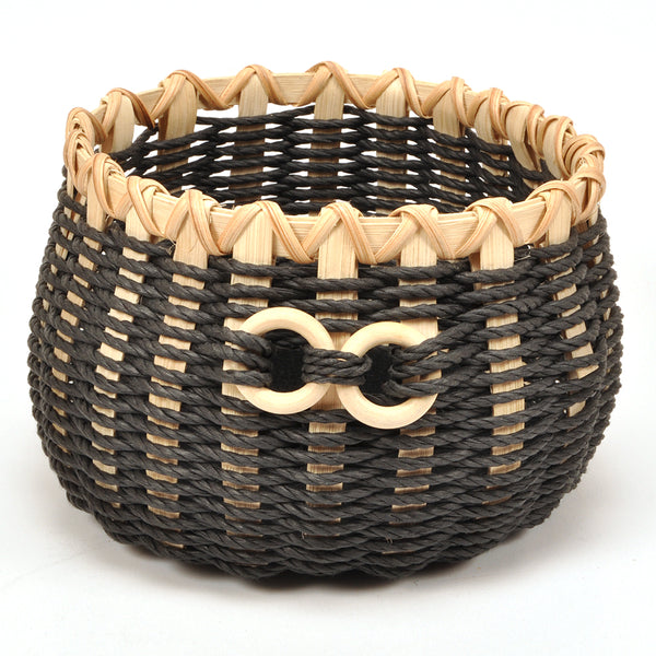 Garnkurv af rattan og papirsnor, sort